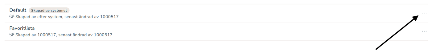 Du kopierar listan genom att klicka på de tre små prickarna till höger och sedan välja ”Kopiera”. Listan är nu kopierad och du kan redigera listans namn genom att klicka på de tre små prickarna till höger om listan.